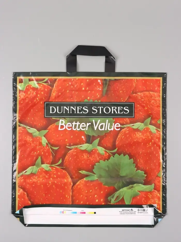 Пакет "Клубника", полиэтиленовый с петлевой ручкой, 45 х 45 + 3 см, 60 мкм