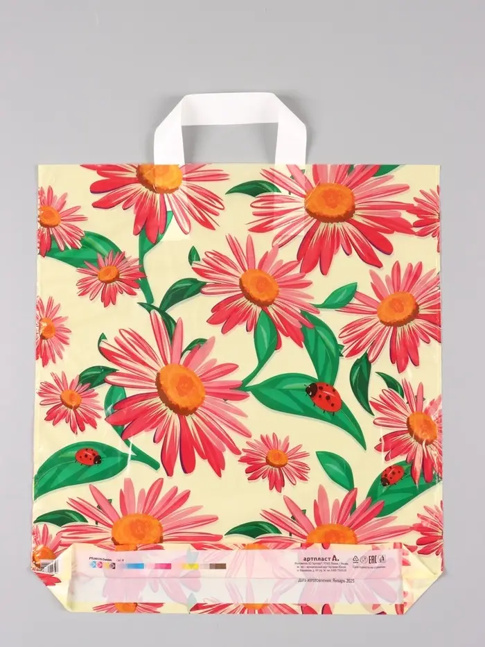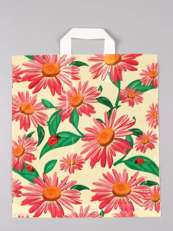 Пакет "Ромашки", полиэтиленовый с петлевой ручкой, 38 х 42 + 3 см, 37 мкм