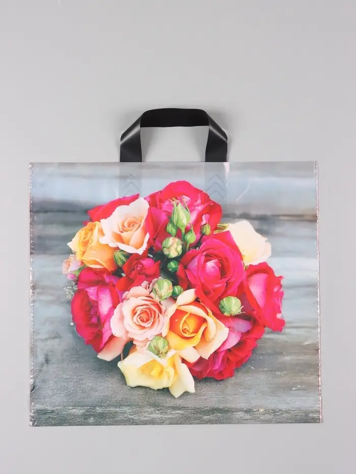 Пакет "Волшебный букет", полиэтиленовый с петлевой ручкой, 38 х 34 + 3 см, 70 мкм