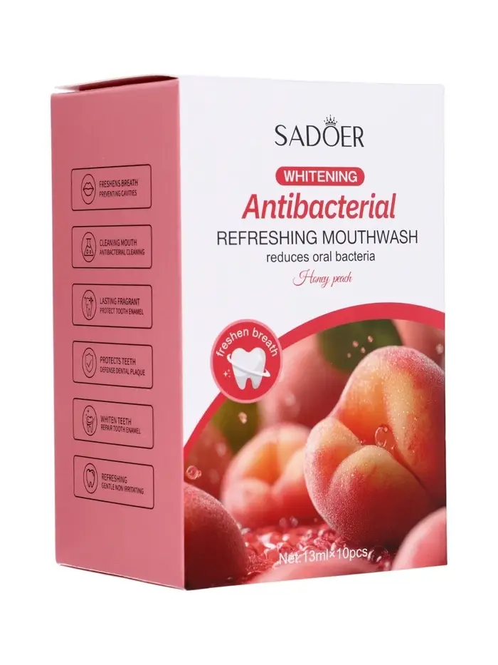 Набор Антибактериального ополаскивателя для полости рта SADOER, персик, 10 шт по 13 мл