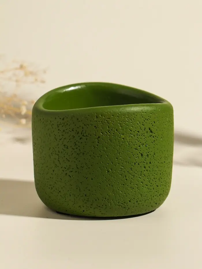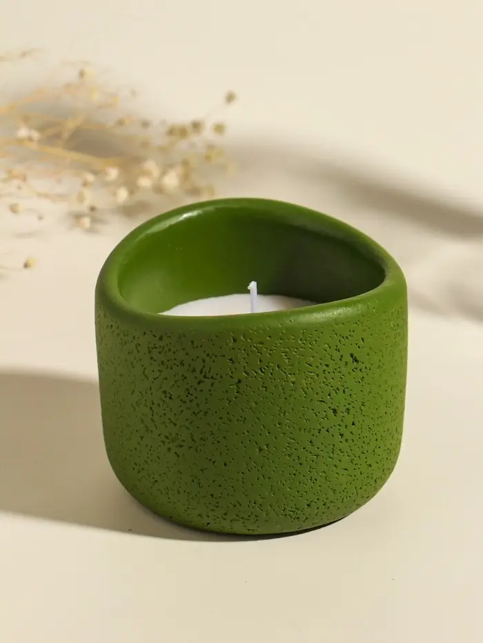 Свеча в вулканическом подсвечнике "Изгиб" зелёная 8,3х8,5х7 см