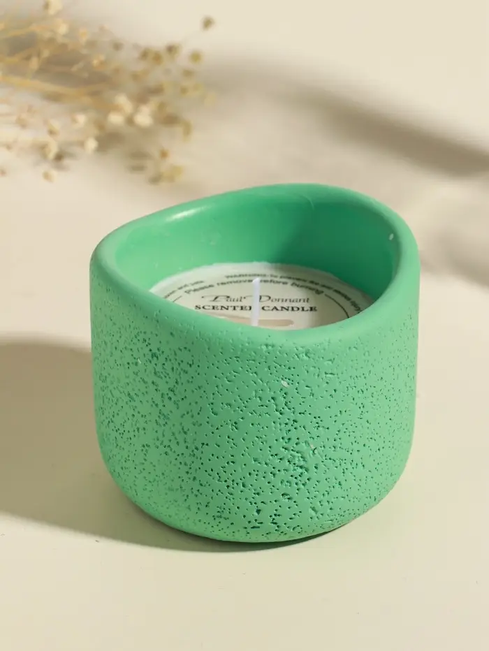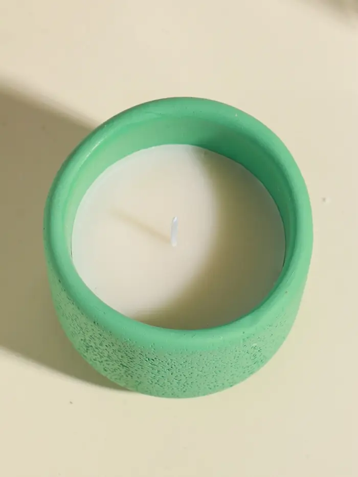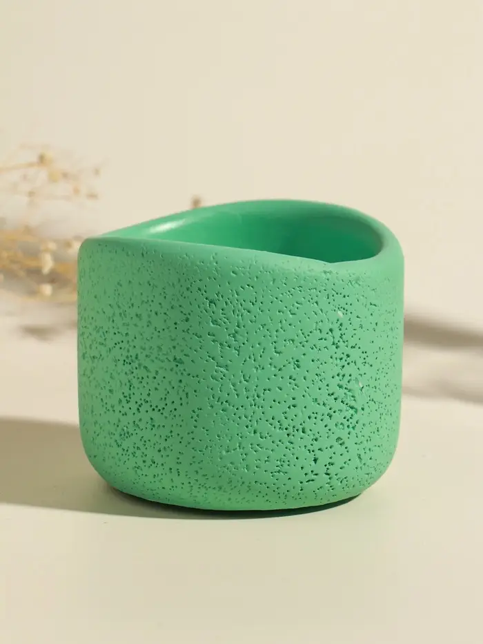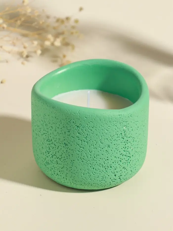 Свеча в вулканическом подсвечнике "Изгиб" мятная 8,3х8,5х7 см