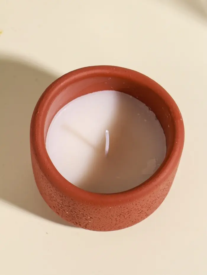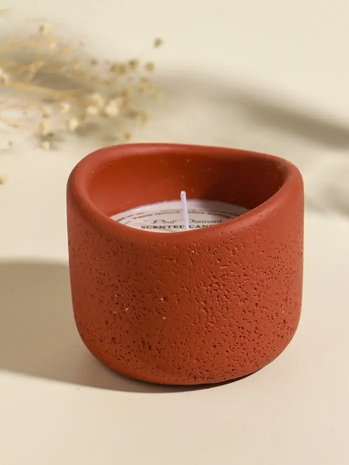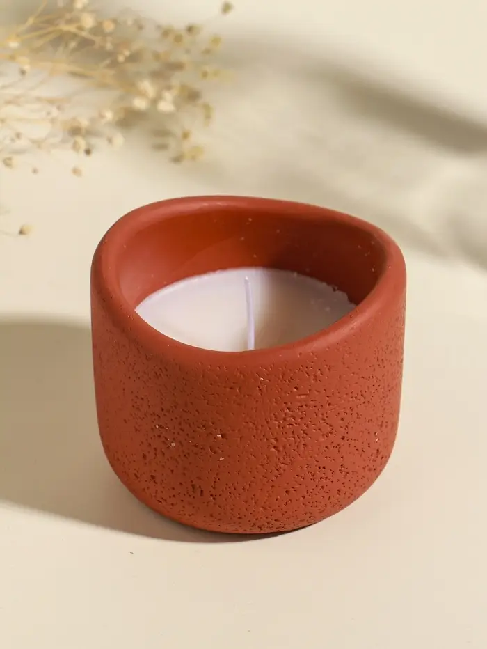 Свеча в вулканическом подсвечнике "Изгиб" персиковая 8,3х8,5х7 см