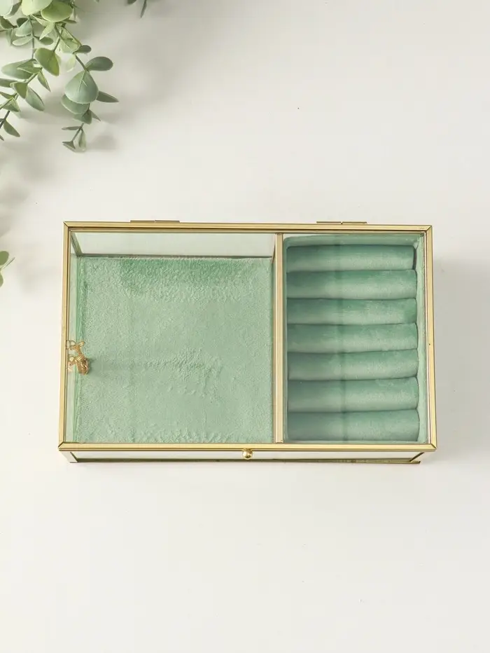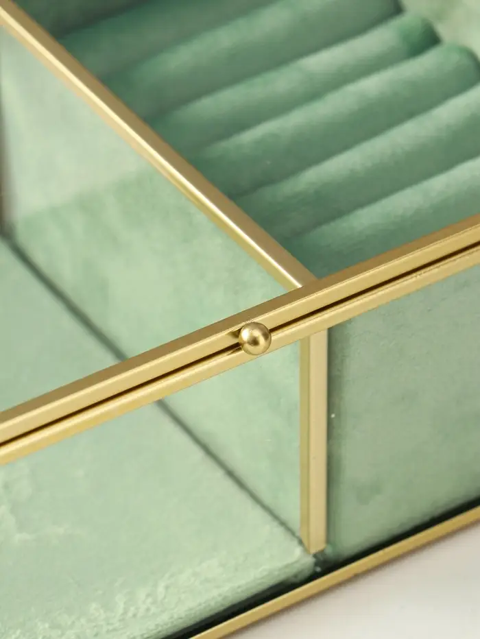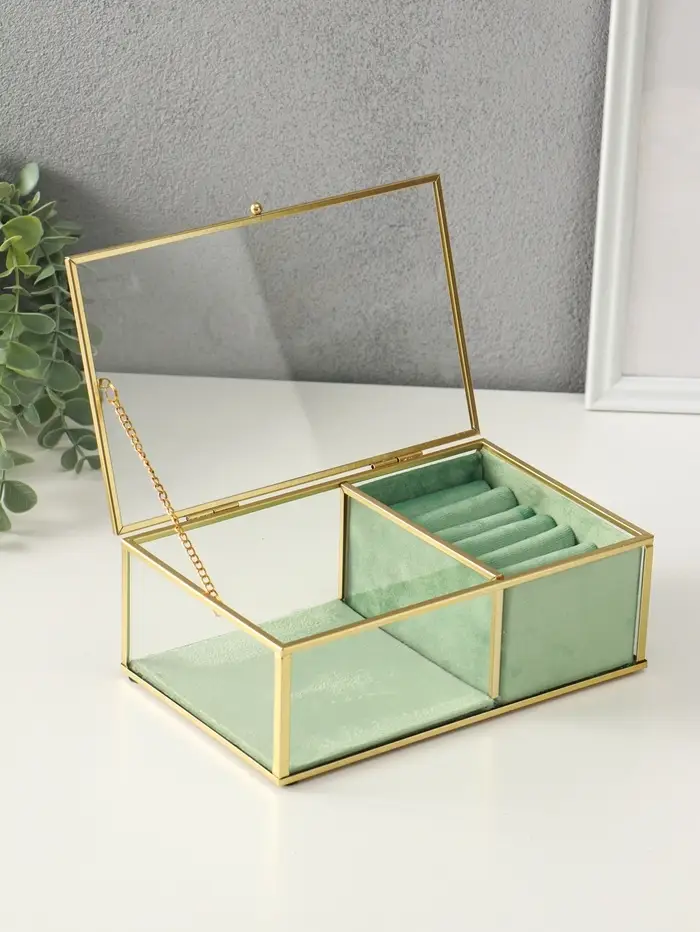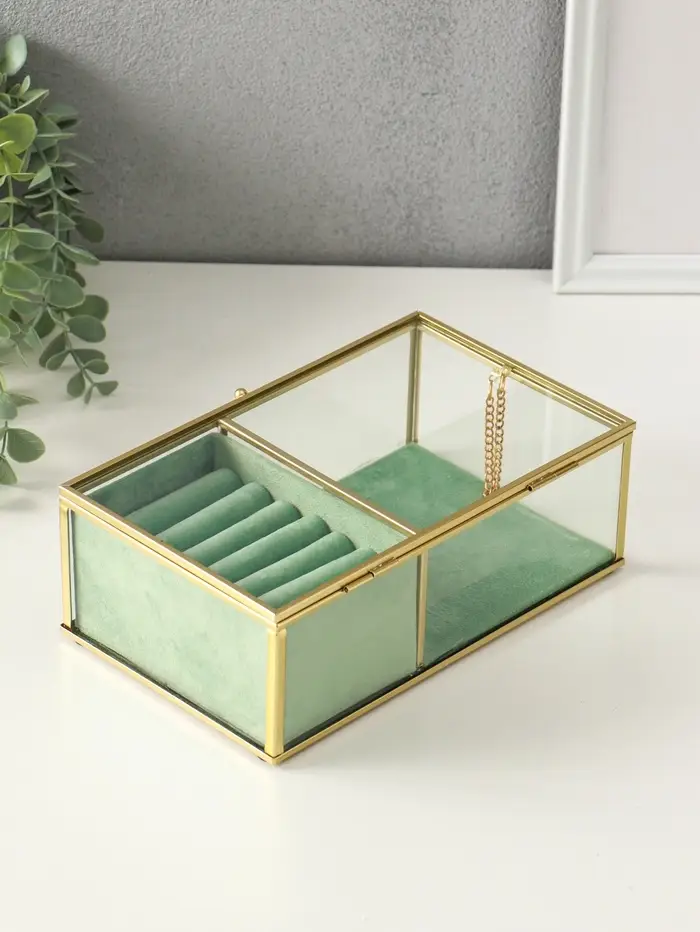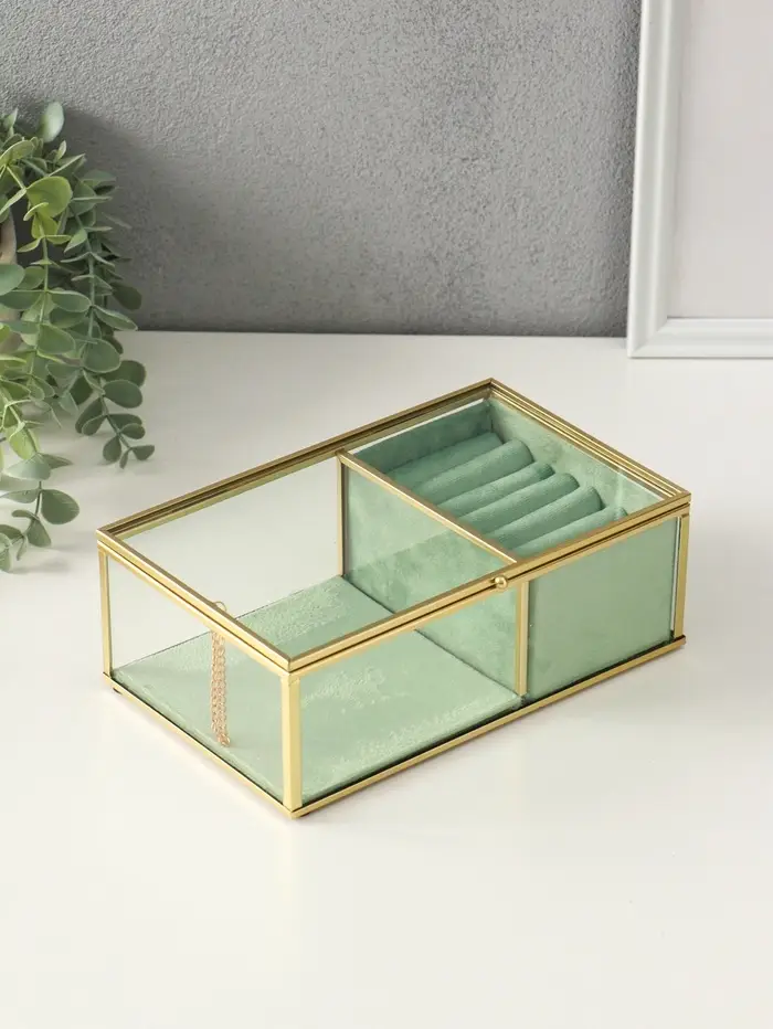Шкатулка стекло с металлическим каркасом "Зелёная" 2 отделения 22х14,5х7,5