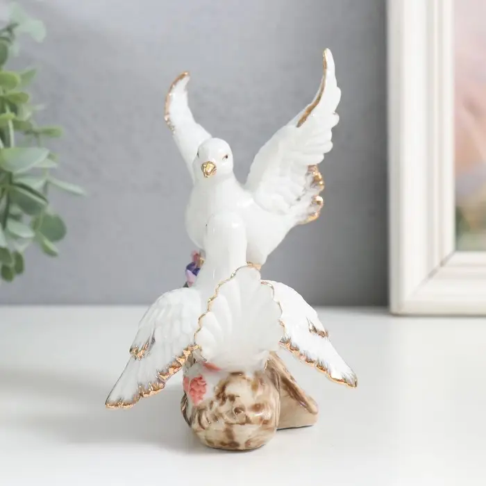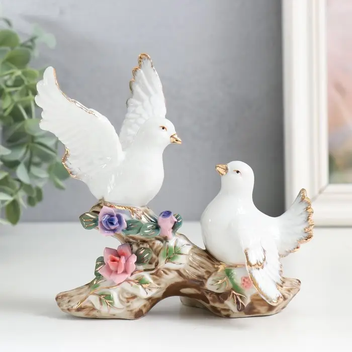 Сувенир керамика "Голуби на цветочной ветке" 12 см