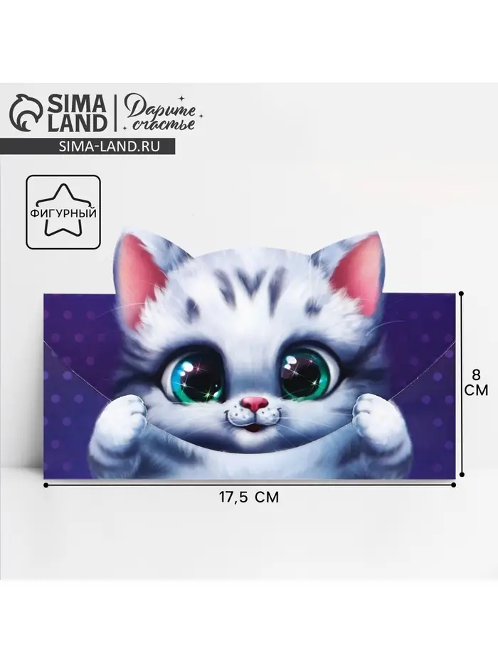 Конверт для денег фигурный «Котёнок», 17.5 х 8 см