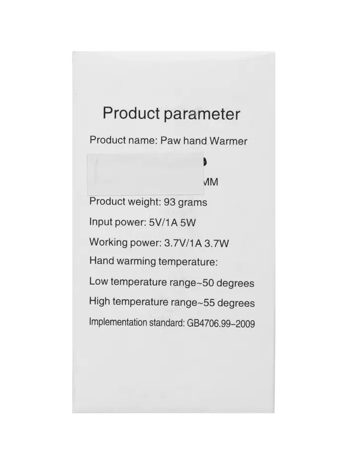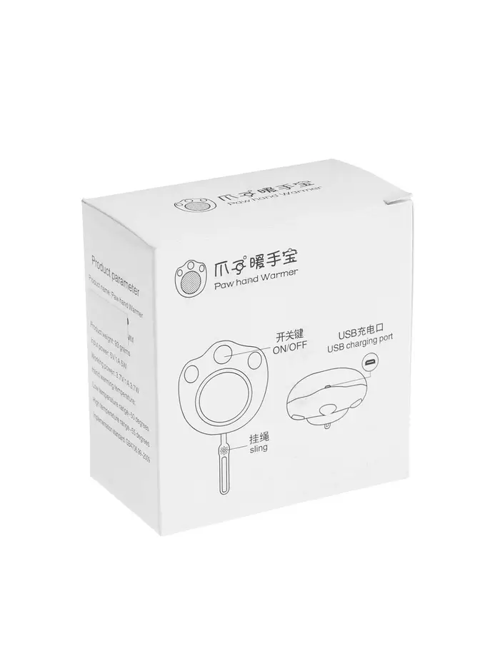 Электрическая портативная грелка для рук, 5 Вт, АКБ, 800 мАч, до 55 °С, USB, белая