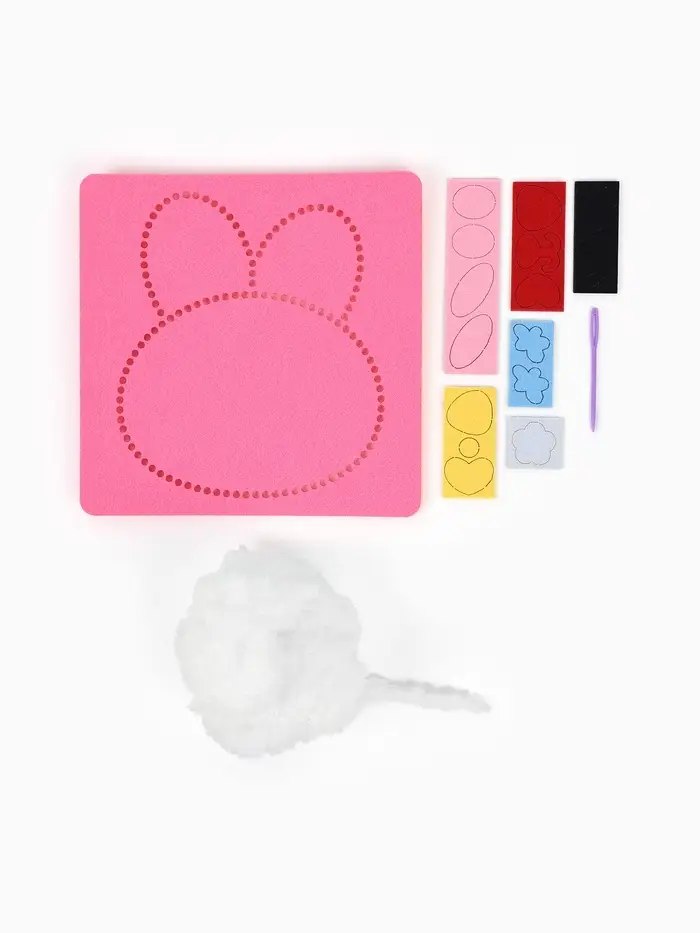 Вышивка по фетру "Зайка", 20,5*20,5 см, цвет розовый