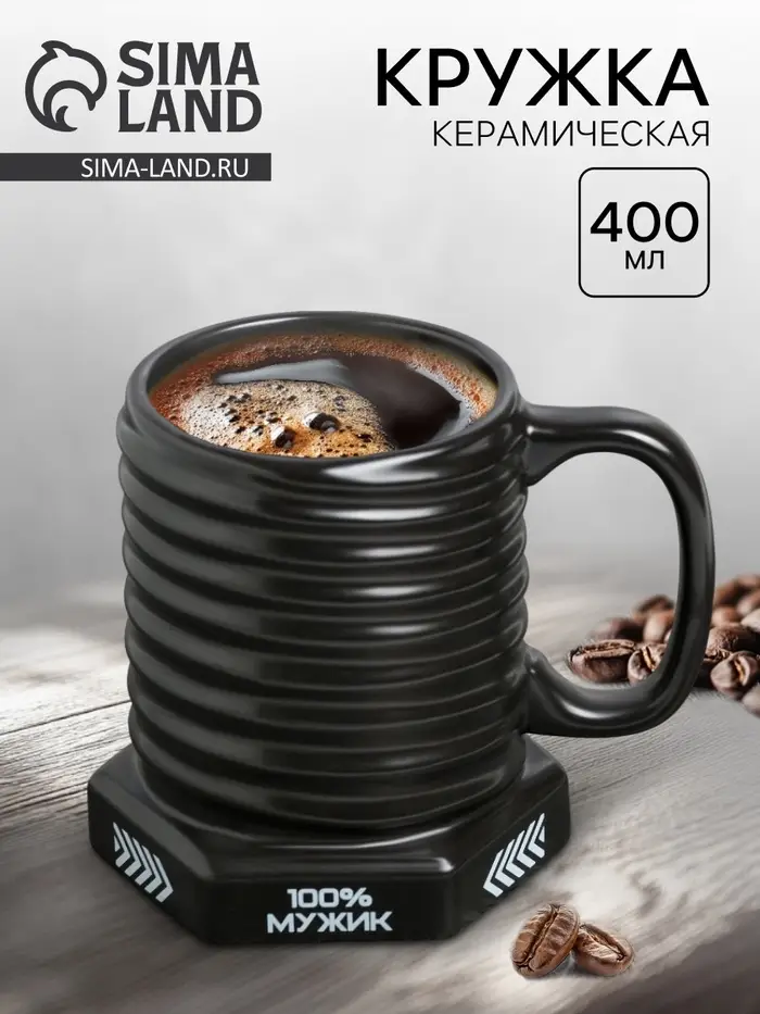 Керамическая кружка-болт «100% мужик» станет прекрасным дополнением вашего дома и отличным подарком для ваших близких.