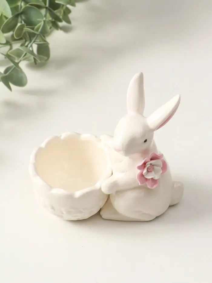 Сувенир керамика подставка "Зайка с цветком" белый 10,5х4,5х10 см