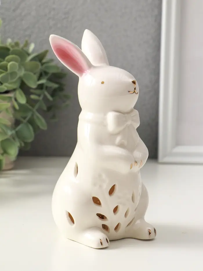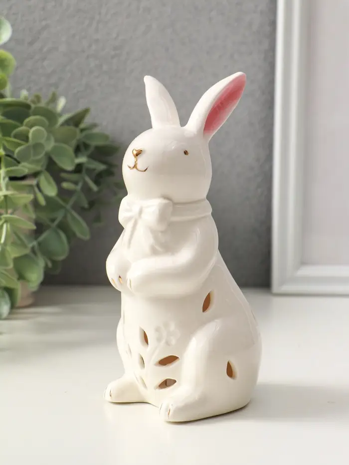 Сувенир керамика свет "Зайка с бантом" белый 7,5х8х15,5 см