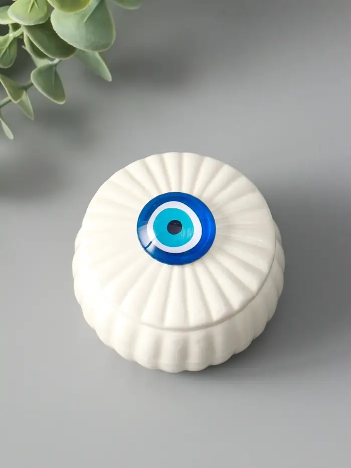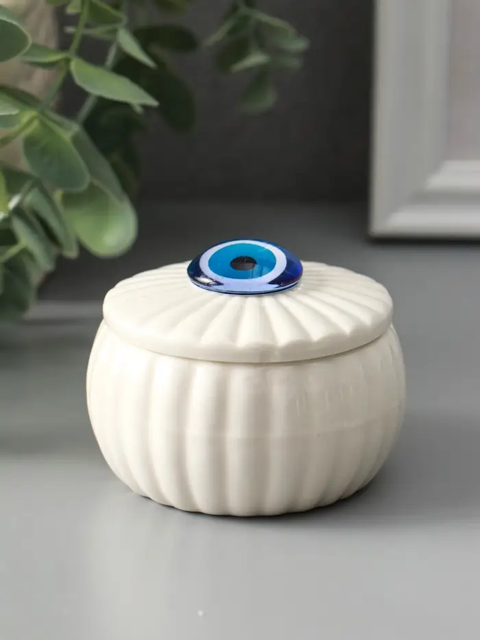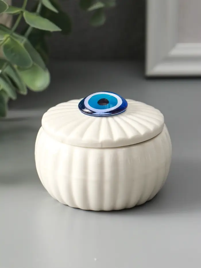 Шкатулка керамика "Глаз от сглаза" белая 7х7х5,3 см