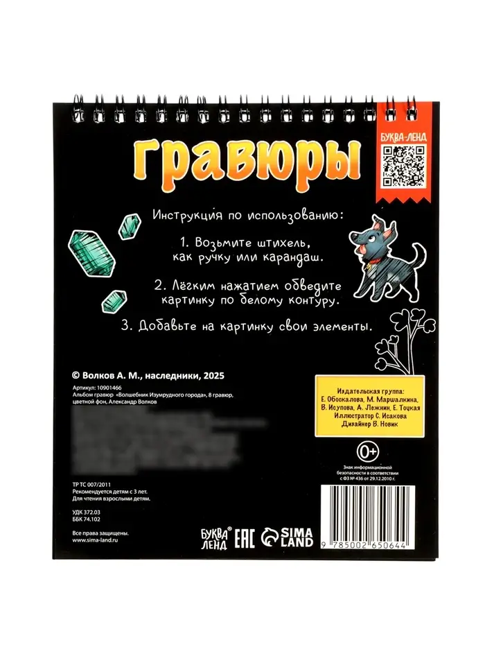 Альбом гравюр "Волшебник изумрудного города", 8 гравюр, цветной фон, Александр Волков