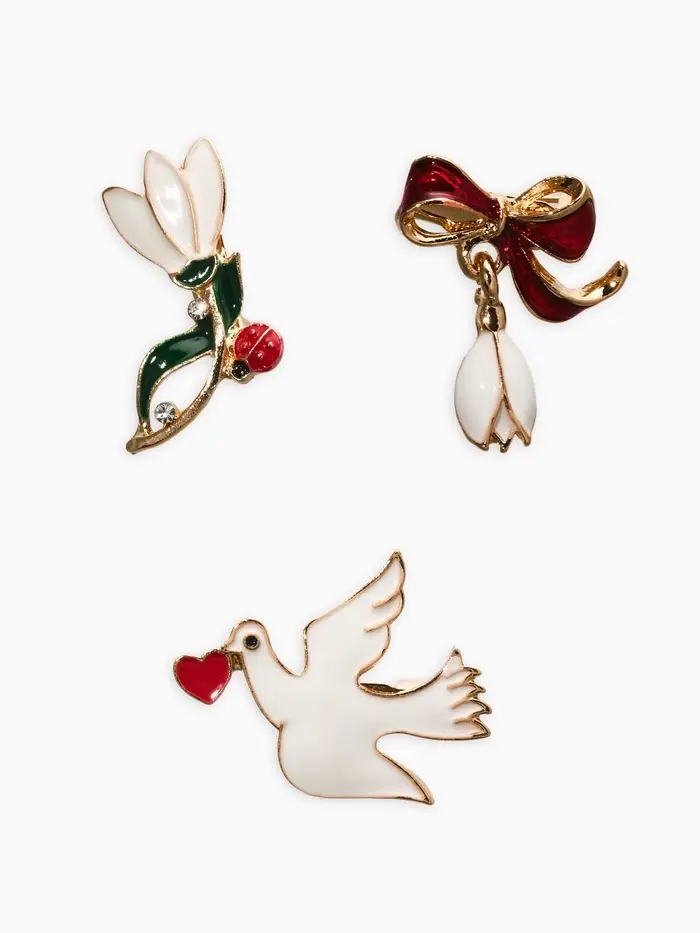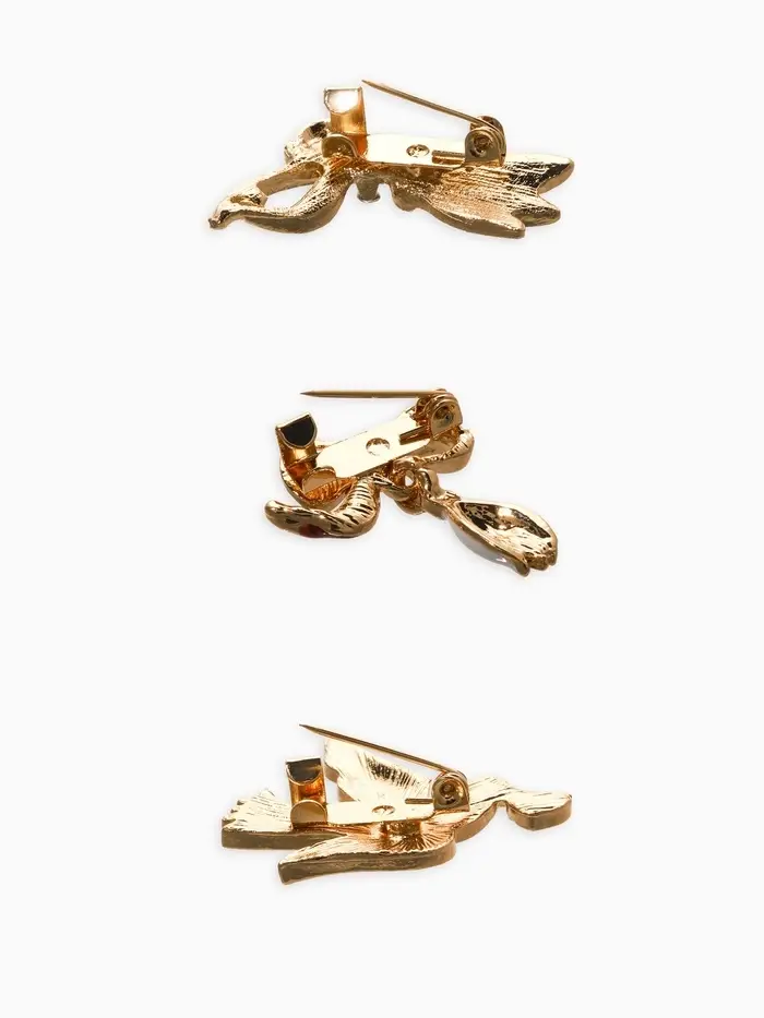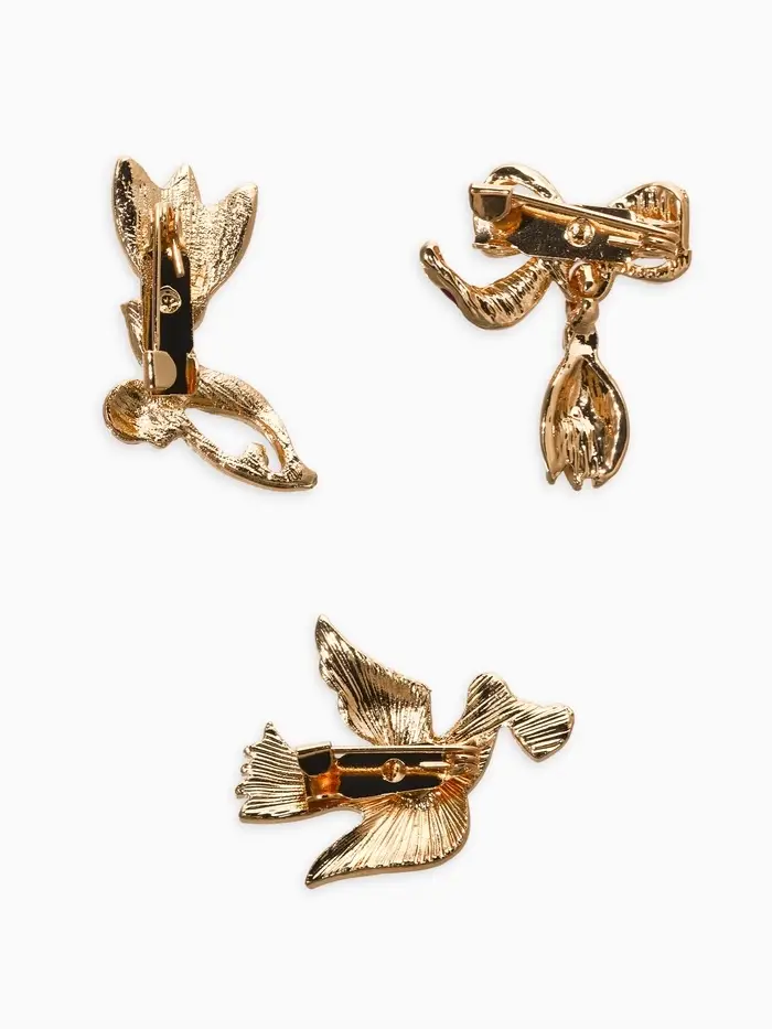 Броши "Голубь, подснежники" (набор 3шт), цветной в золоте