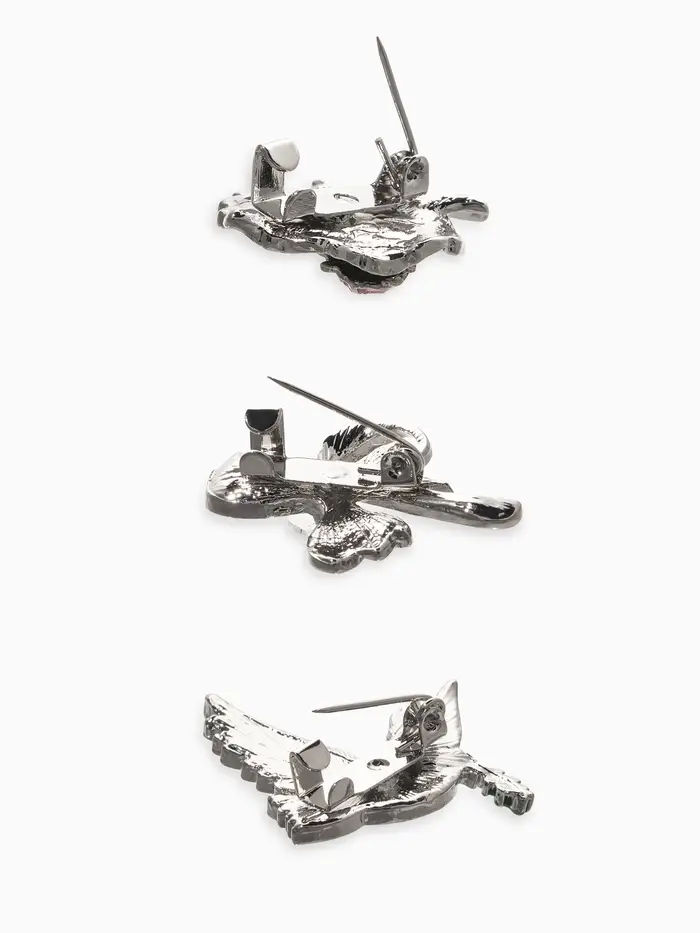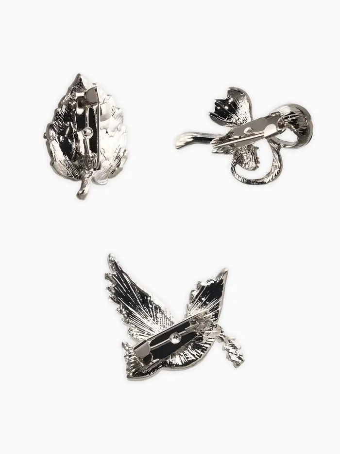 Броши "Голубь, листик, подснежник" (набор 3шт), цветной в серебре