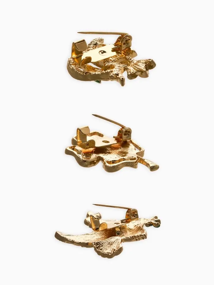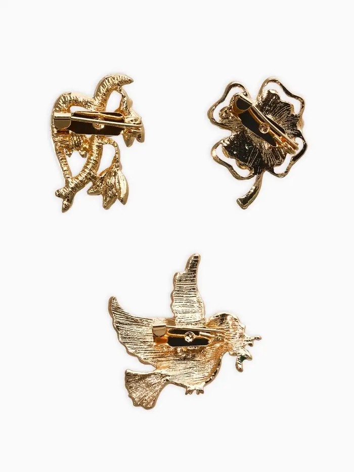 Броши "Голубь, клевер, подснежник" (набор 3шт), цветной в золоте