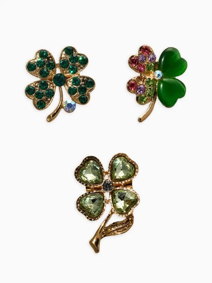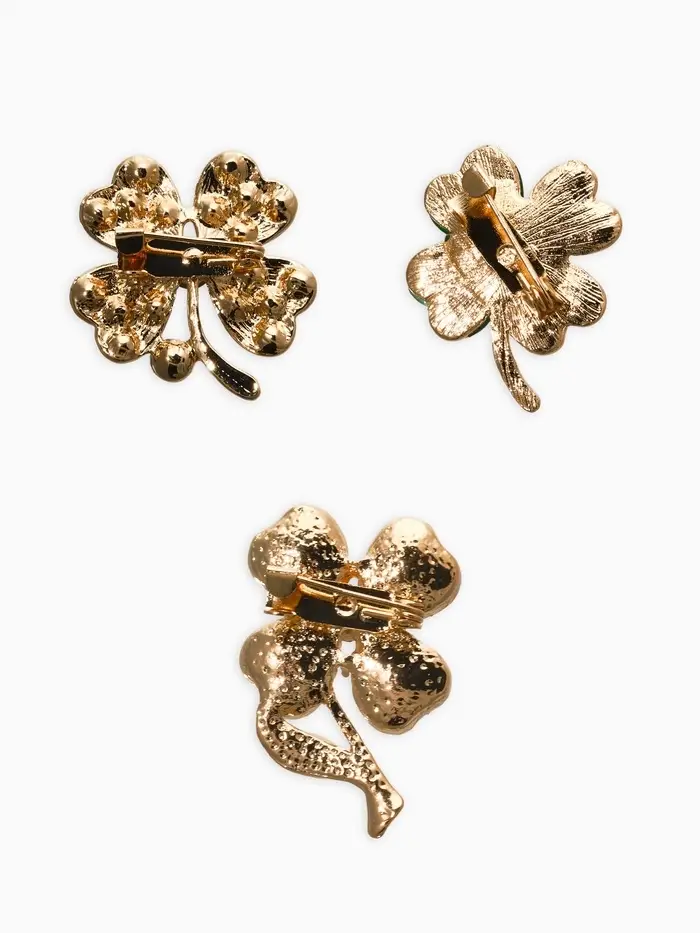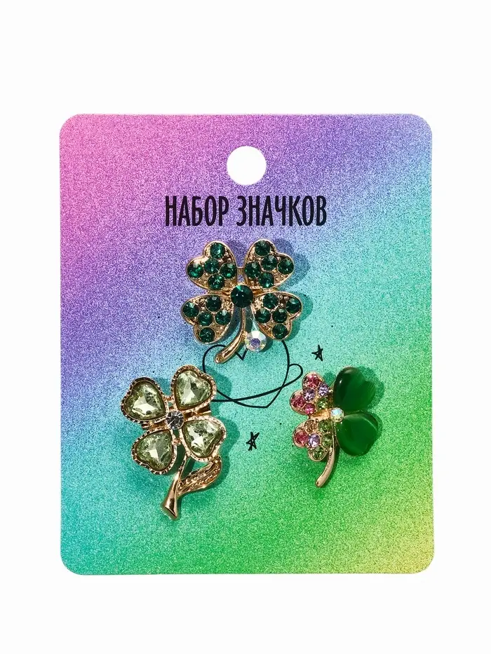 Броши "Клевер" (набор 3шт), цвет зелёный в золоте