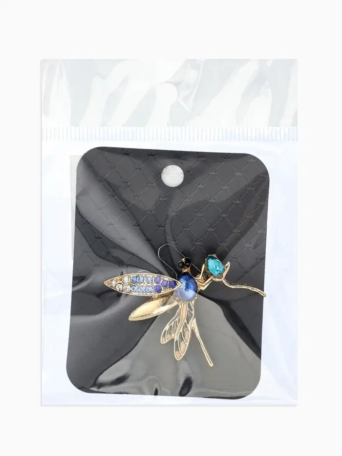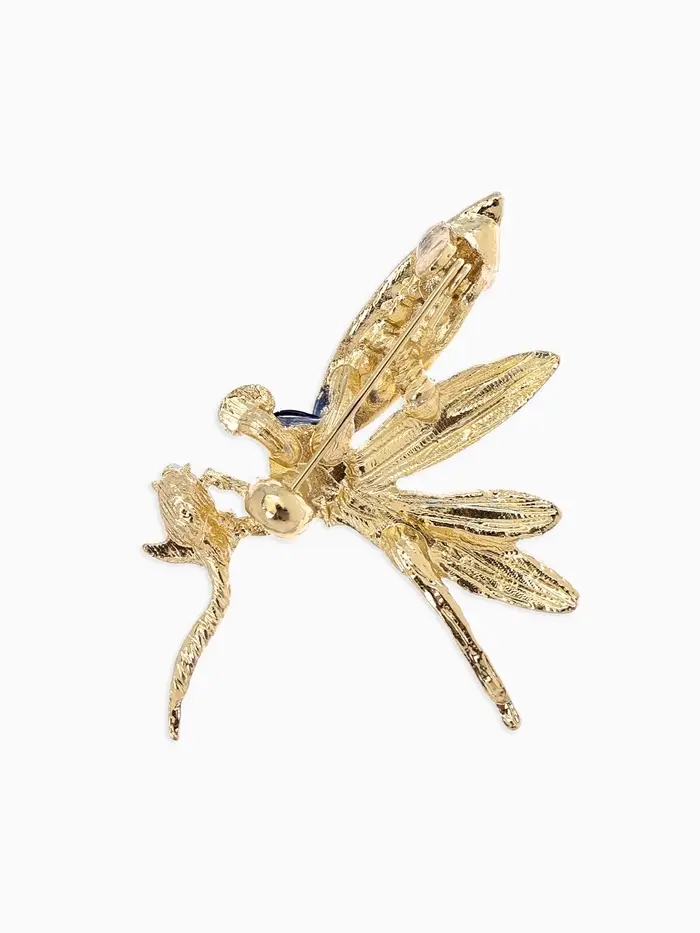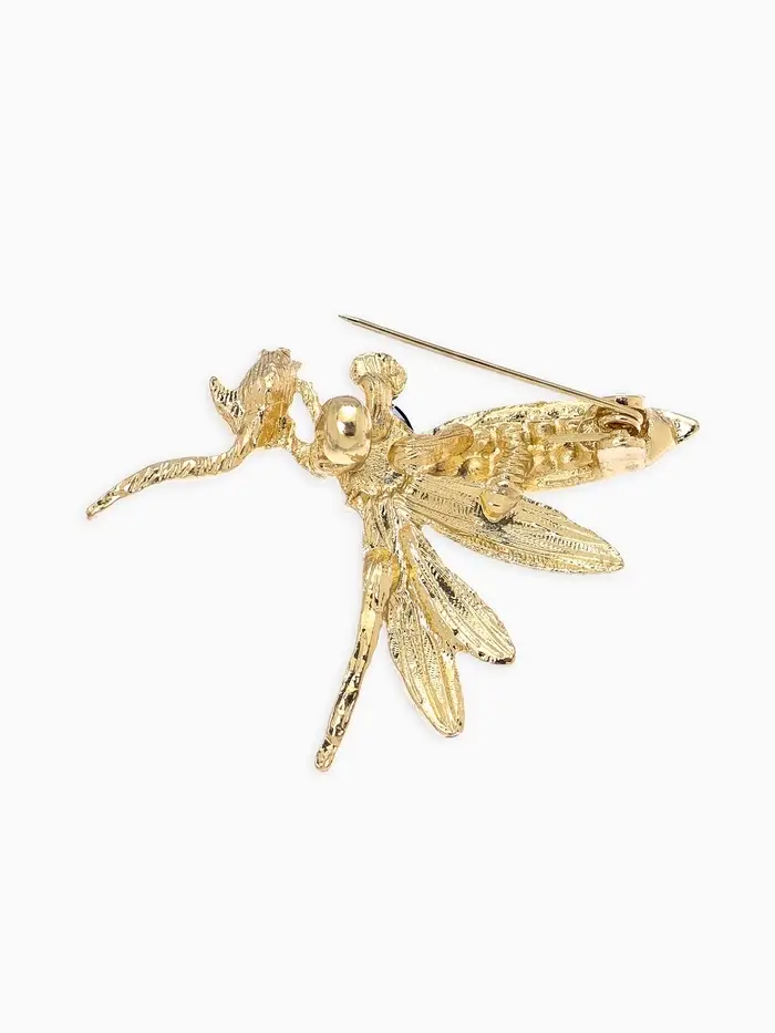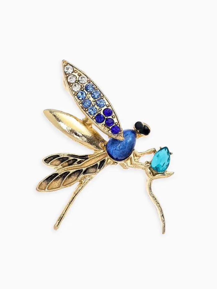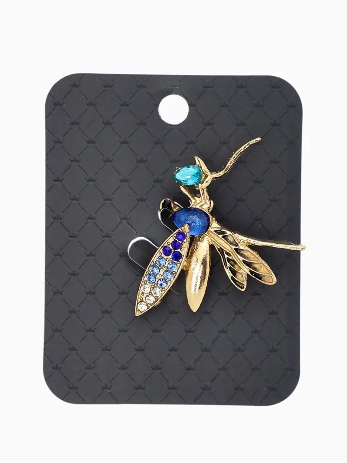 Брошь "Стрекоза" искристая, цвет сине-голубой в золоте
