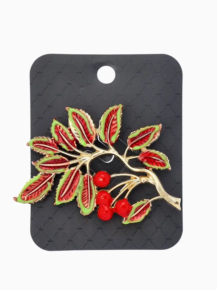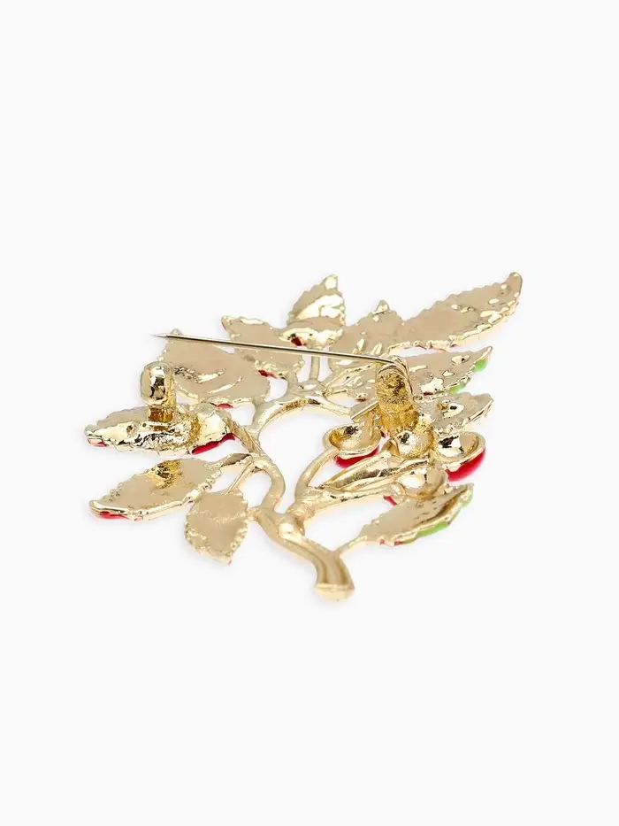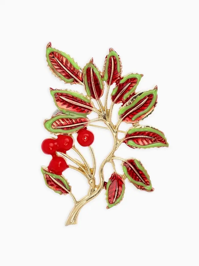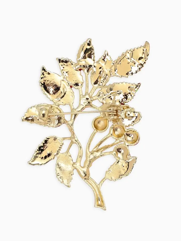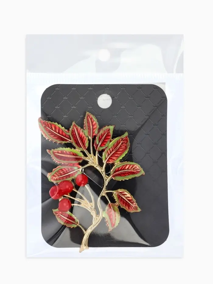 Брошь "Веточка Калины", цвет красно-коричневый в золоте
