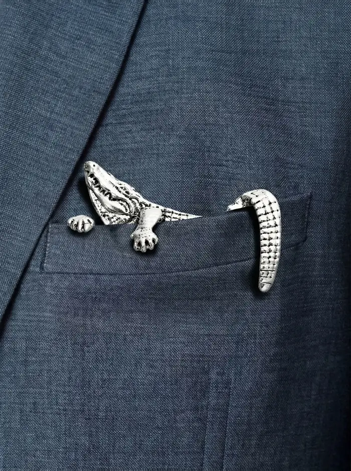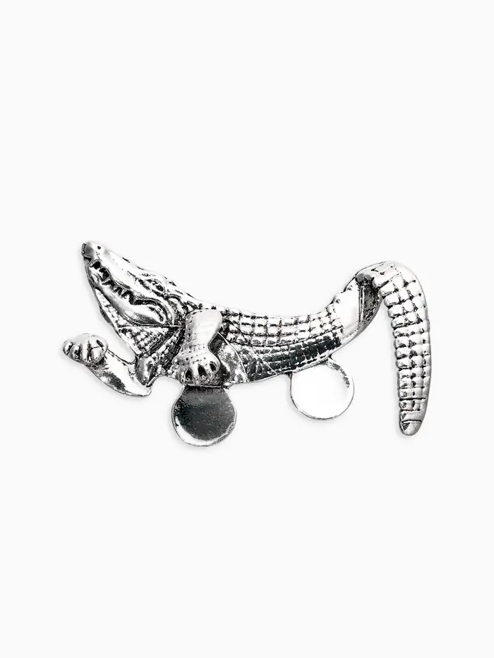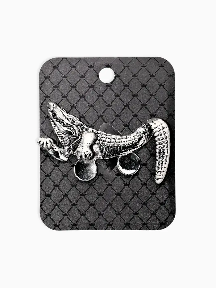 Брошь для кармана "Крокодил", цвет чернёное серебро