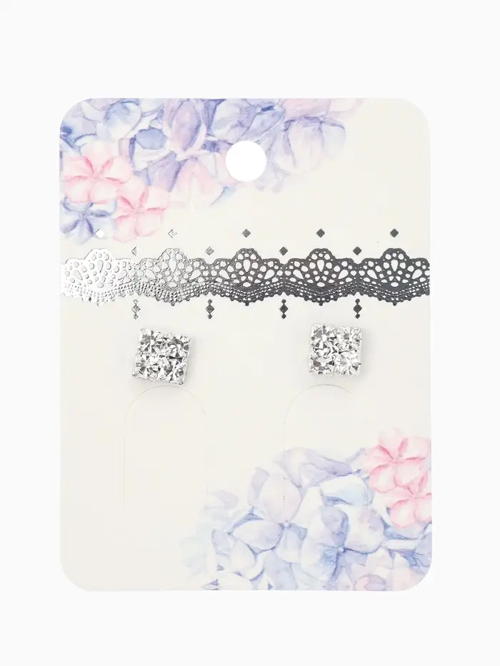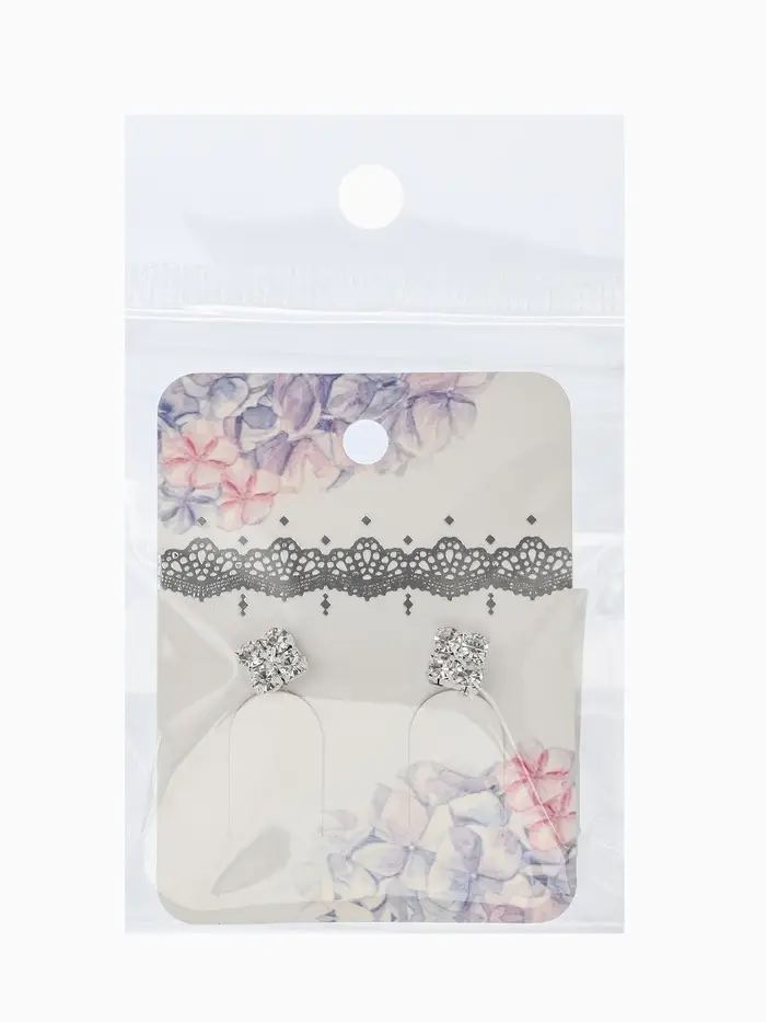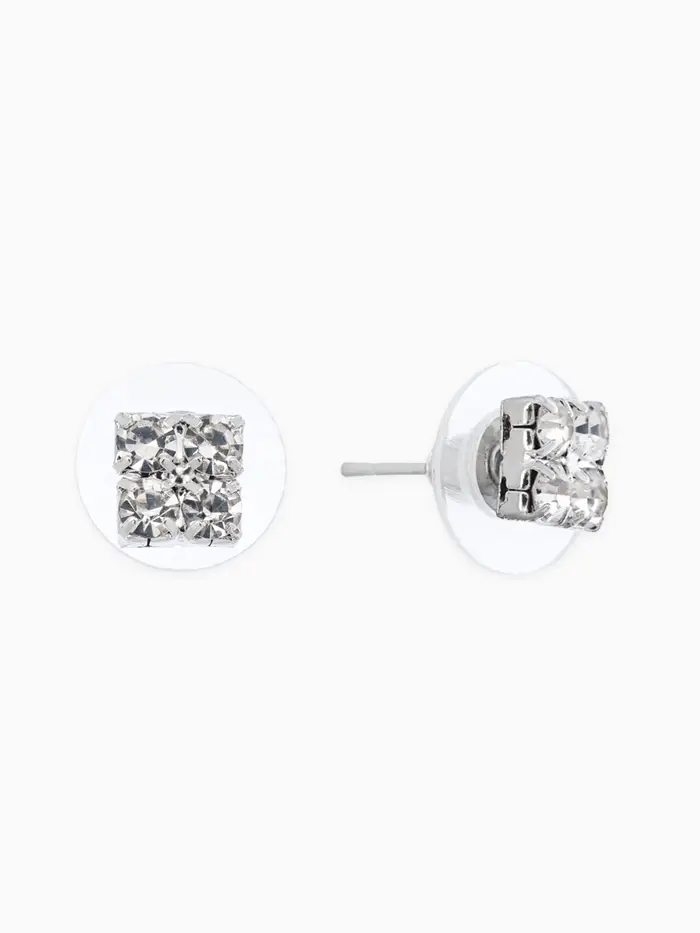Серьги со стразами "Квадрат" 6*6мм, цвет белый в серебре