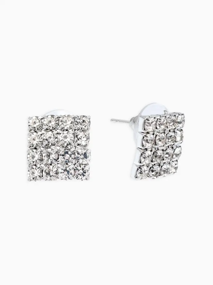Серьги со стразами "Квадрат" 12*12мм, цвет белый в серебре