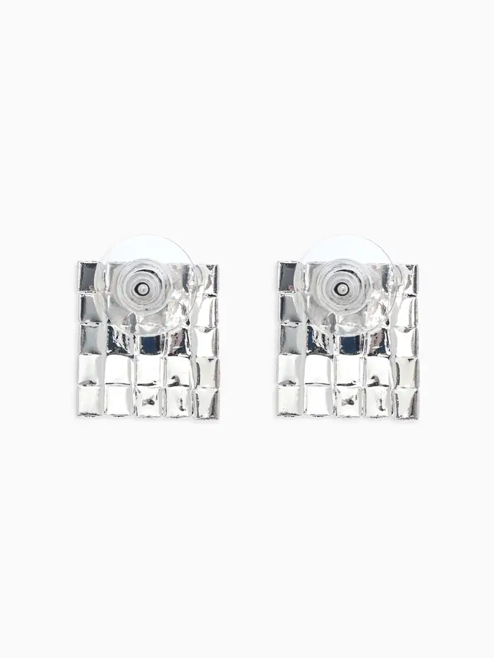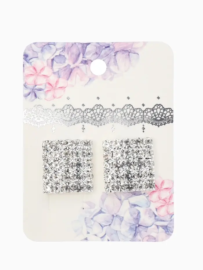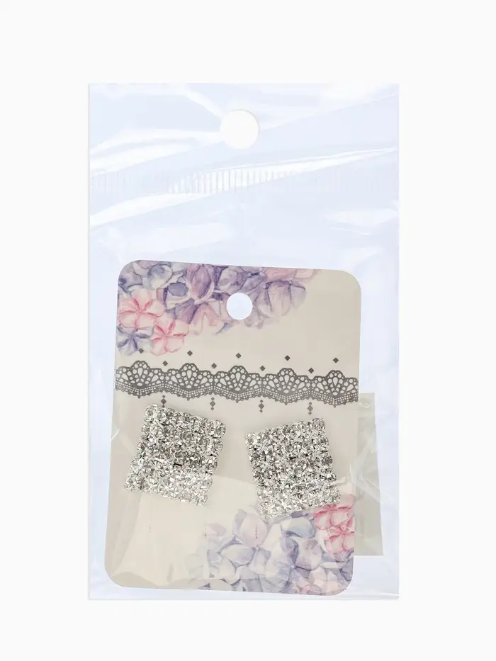 Серьги со стразами "Квадрат" 15*15мм, цвет белый в серебре