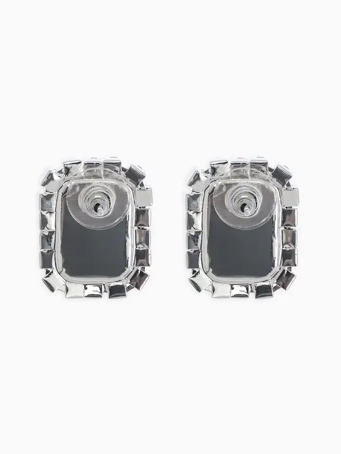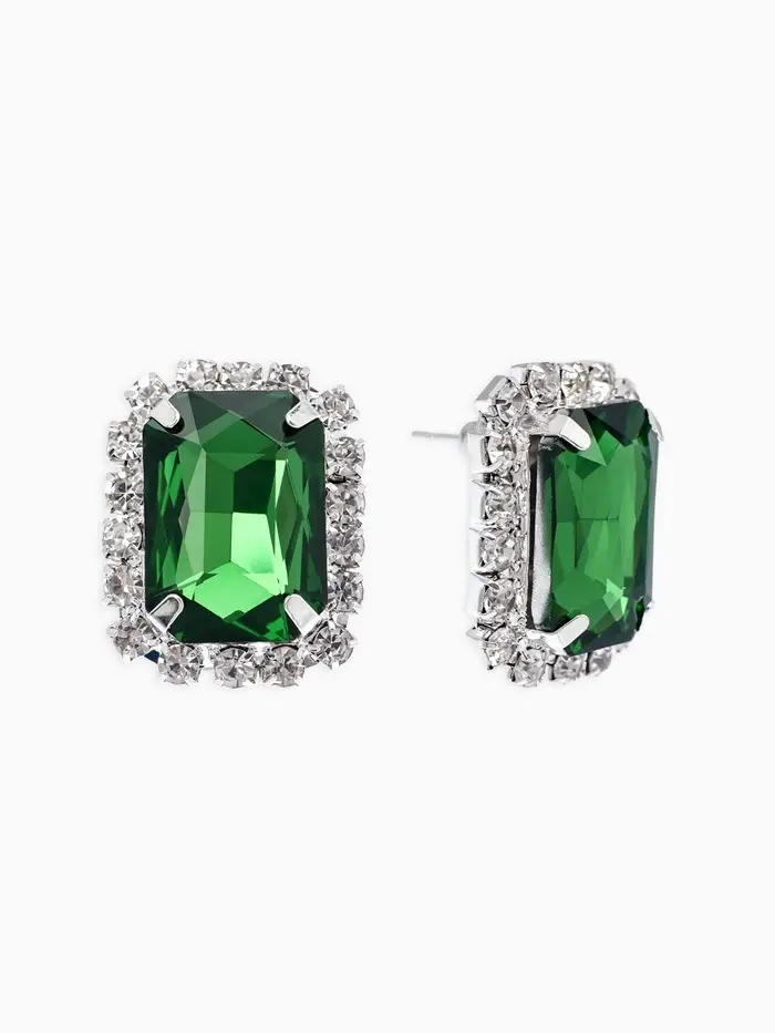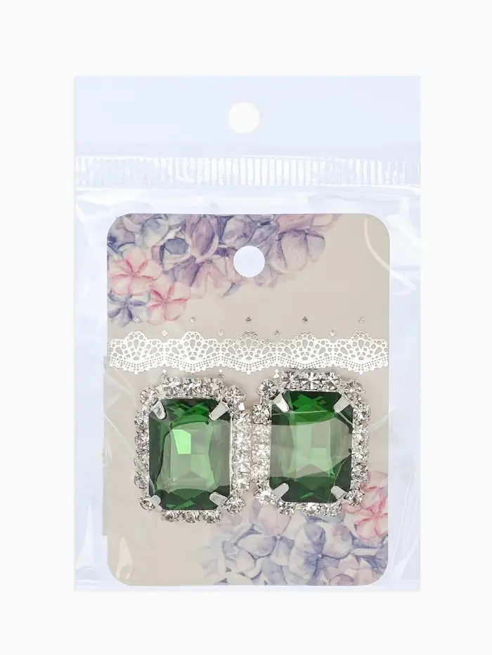Серьги со стразами "Роскошь", прямоугольник, цвет зелёно-белый в серебре