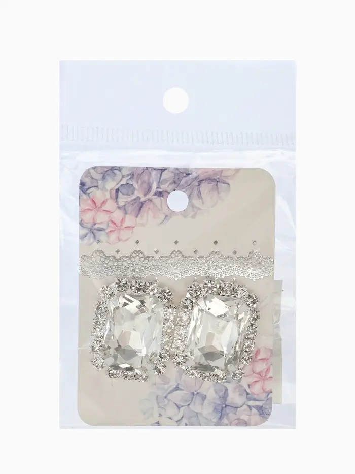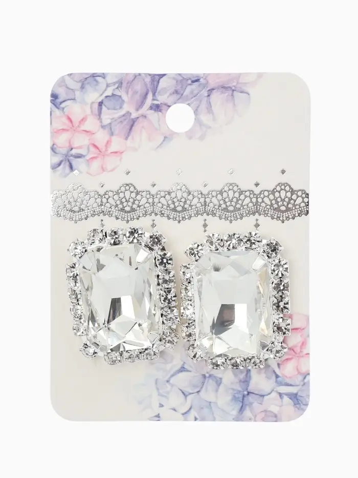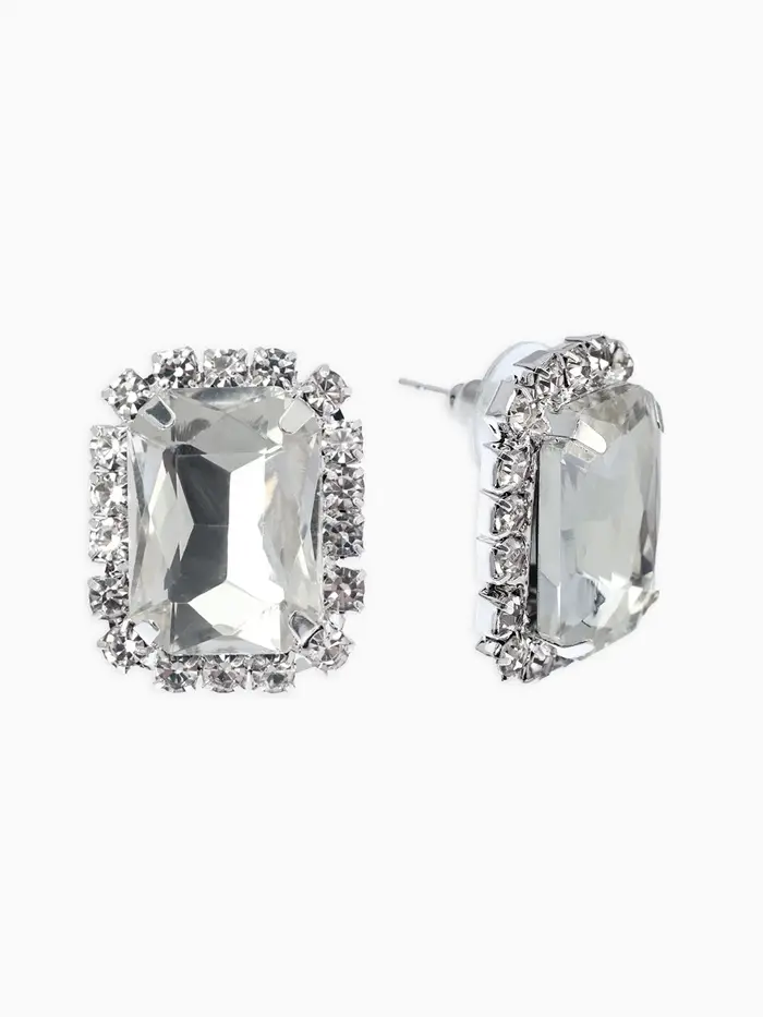 Серьги со стразами "Роскошь", прямоугольник, цвет белый в серебре