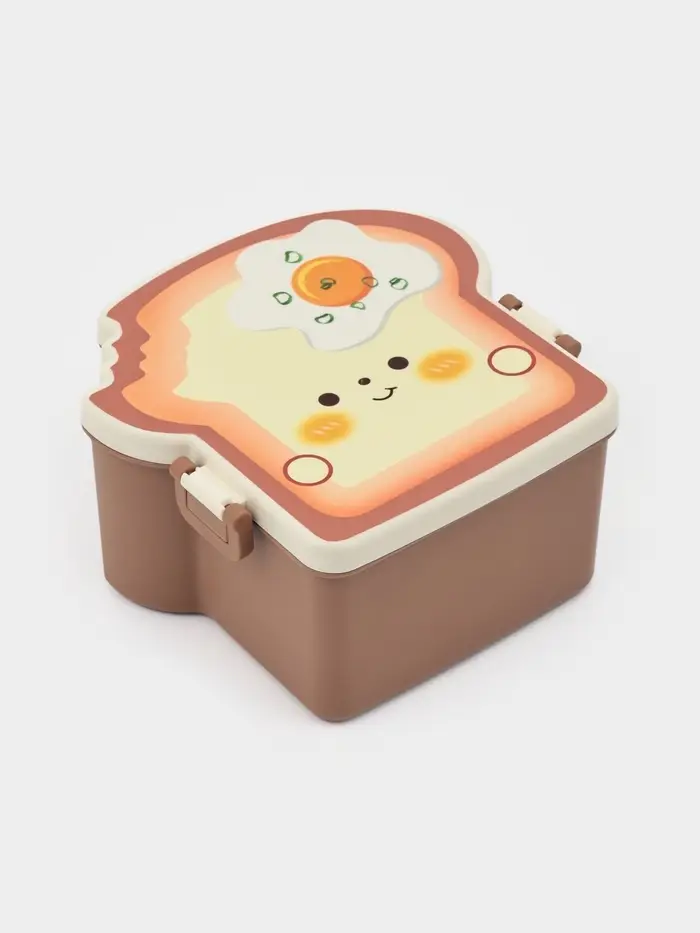 Ланч-бокс "Завтрак", 3 отделения, вилка и ложка, размер 16х15,5х8 см, цвет коричневый