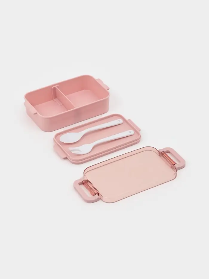 Ланч-бокс, 2 отделения, 2 яруса, с вилкой и ложкой, бутылкой 500мл,20х17х5,5 см,цвет розовый 10949