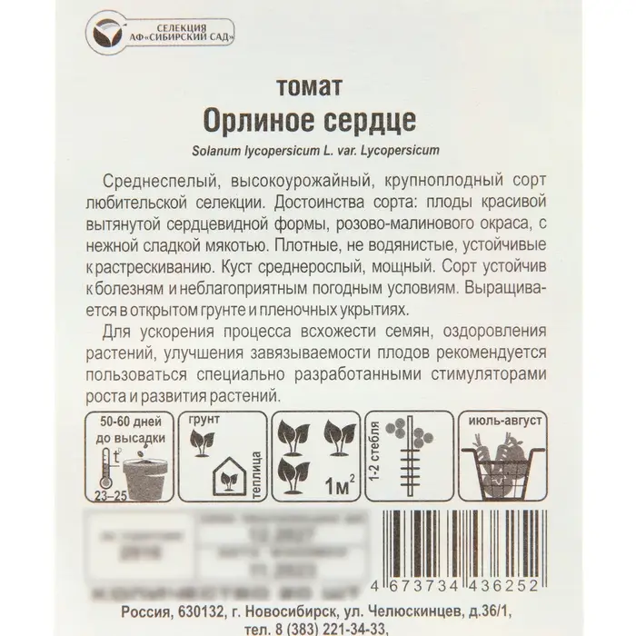 Семена Томат "Орлиное сердце", среднеспелый,детерминантный,среднерослый 20 шт