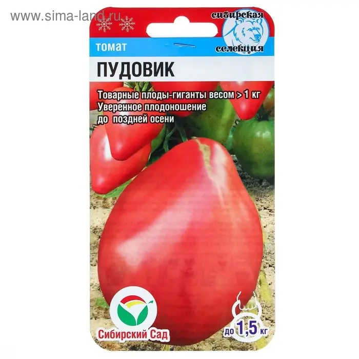 Крупные плоды сердцевидной формы окрашены ярким оттенком малиново-красного. Под их тонкой кожицей скрывается плотная вкусная мякоть. Благодаря повышенному содержанию твёрдых веществ «Пудовик» станет идеальным сырьём для переработки в пасту или томатный сок. Не менее эффектно большие помидоры показывают себя в свежем или консервированном виде.