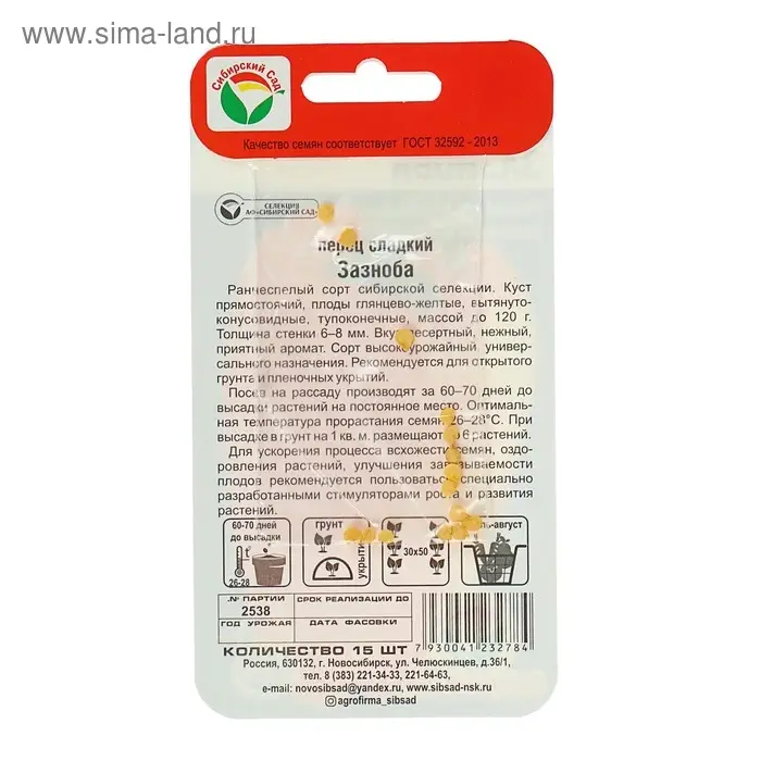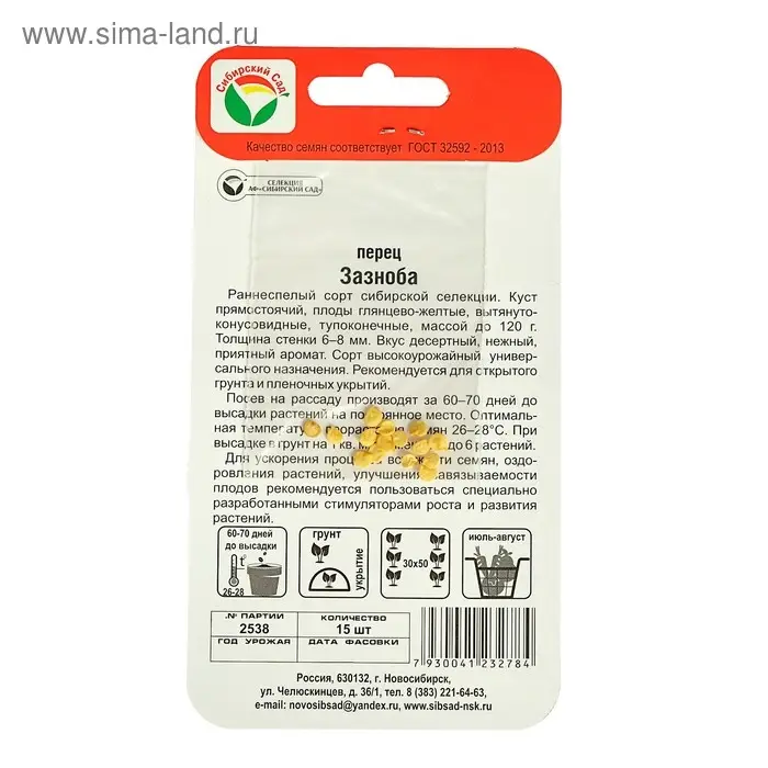 Семена Перец сладкий "Зазноба", раннеспелый, 15 шт