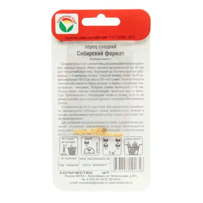 Семена Перец сладкий "Сибирский формат", 15 шт
