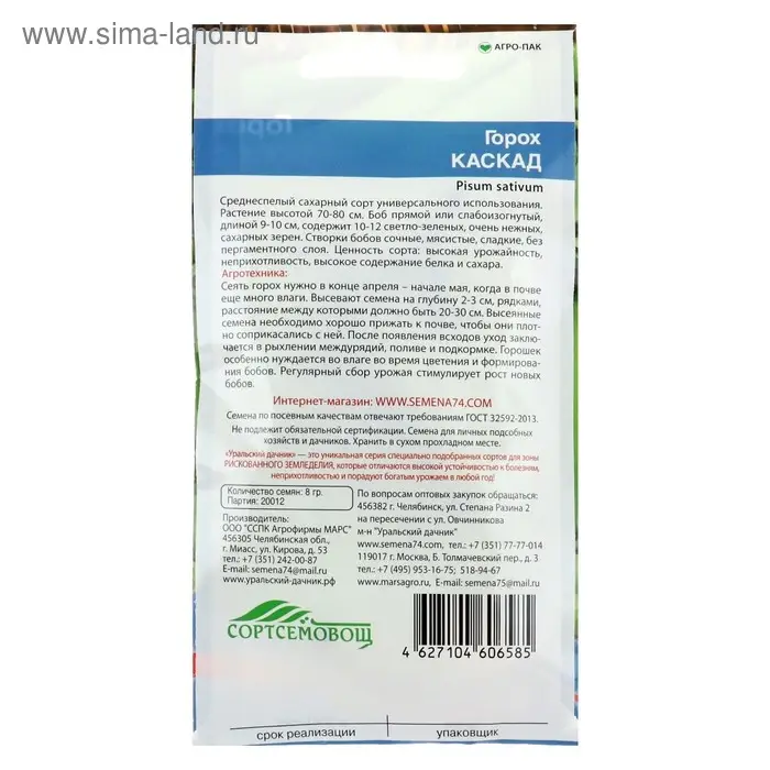 Семена Горох "Каскад", 8 г