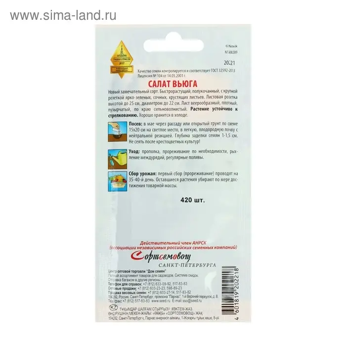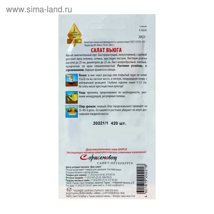 Семена Салат "Вьюга" Дом семян, 420 шт