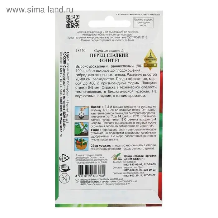 Семена Перец сладкий "Зенит" F1, 10 шт