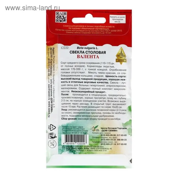 Семена Свекла столовая "Валента", 200 шт