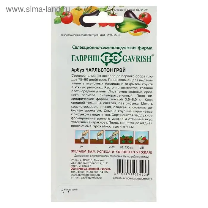 Семена Арбуз «Чарльстон Грей», 5 шт., среднеспелый, «Гавриш»