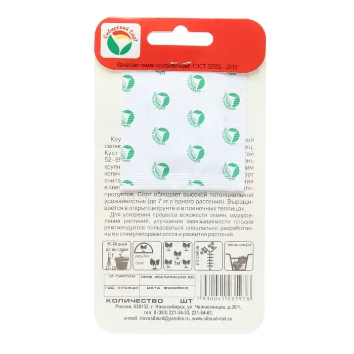 Крупноплодный низкорослый сорт сибирской селекции для открытого грунта и пленочных теплиц. Куст обыкновенный детерминантный, высотой 52-55 см. Плоды сердцевидной формы, очень крупные (до 300-500 г), мясистые, с небольшим количеством семян. По вкусовым качествам сорт считается одним из лучших для употребления в свежем виде и приготовления различных томато- продуктов. Сорт обладает высокой потенциальной урожайностью (до 7 кг с одного растения). Выращивается в открытом грунте и в пленочных теплицах.