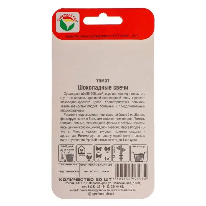 Среднеранний сорт с плодами красивой перцевидной формы редкого шоколадно-красного цвета.