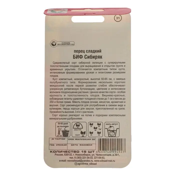 Семена Перец сладкий "БИФ-Сибиряк", 15 шт