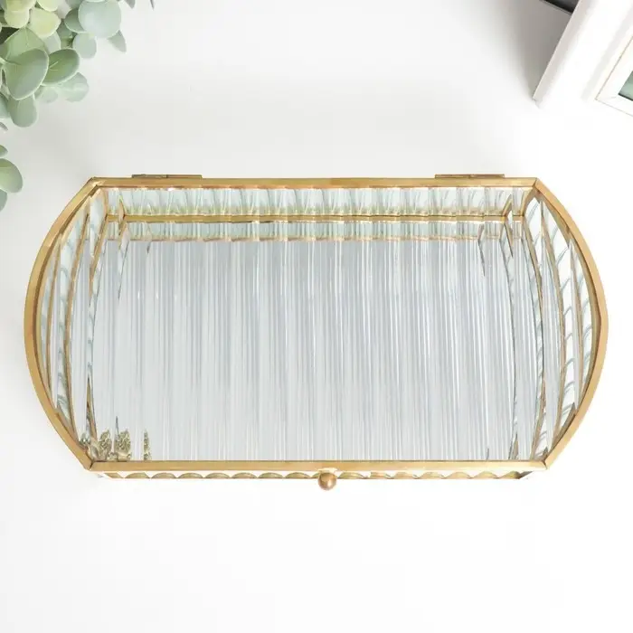 Шкатулка стекло с металлическим каркасом "Волны" золото 5,5х13,5х24,5 см