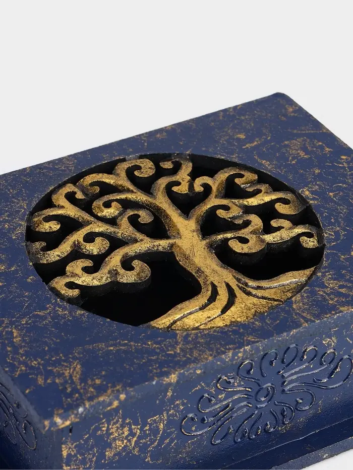 Шкатулка "Древо" 19х15х7 см, МДФ, цв. синий