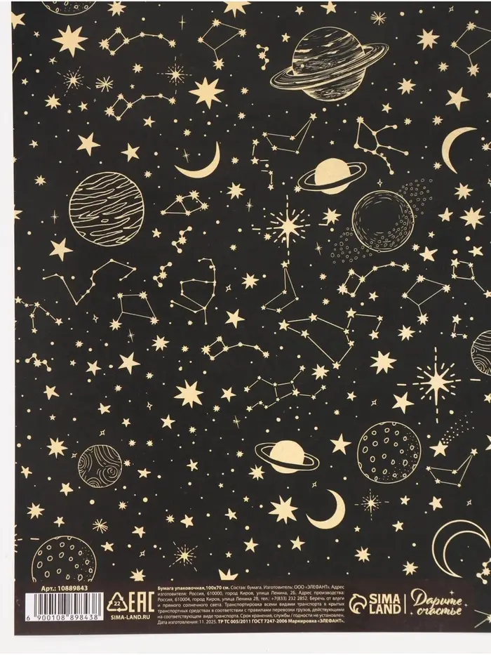 Бумага упаковочная глянцевая «Космос», 70 × 100 см