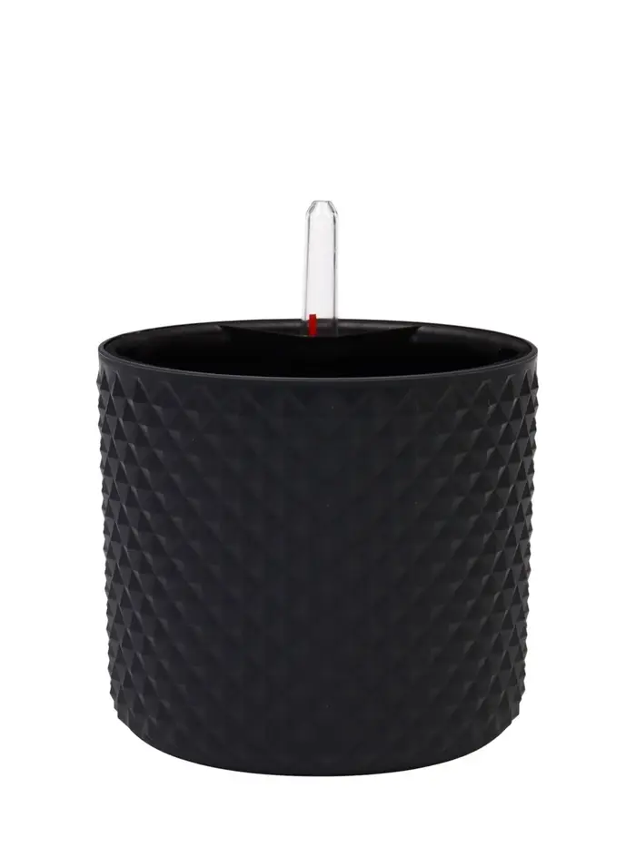 Кашпо для цветов «Фасет», 2 л, d=15 см, h=14 см, пластиковое, с автополивом, со вставкой, серое