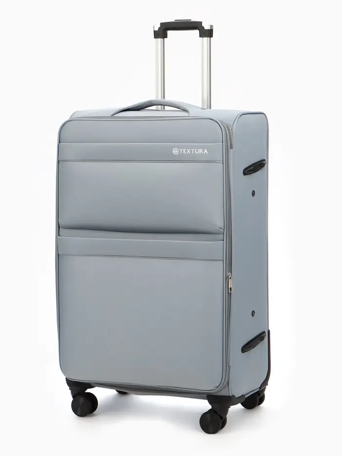 Чемодан 28",Текст,47*30*78,отд на молнии,2 нар/карм, увелич,код замок,4 колеса, т.серый