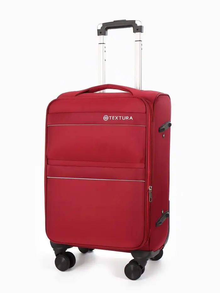 Чемодан 20",Текст,36*25*58,отд на молнии,2 нар/карм, увелич,код замок,4 колеса, красный