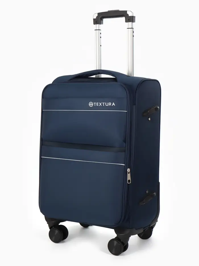 Чемодан 20",Текст,36*25*58,отд на молнии,2 нар/карм, увелич,код замок,4 колеса, синий